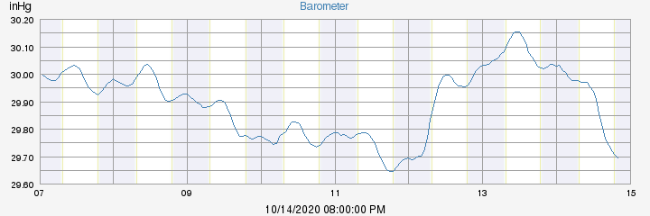 This week's min: 29.643 inHg at 05:26:03 PM (Sunday)