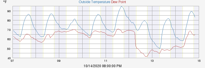 This week's min: 49.9°F at 07:09:32 AM (Tuesday)
